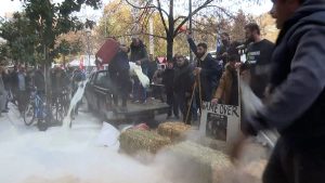 وردّد المحتجون شعارات تندد بالاعتداءات على الشعبين الفلسطيني واللبناني، وطالبوا بقطع العلاقات مع إسرائيل ووقف تصدير الأسلحة إليها.