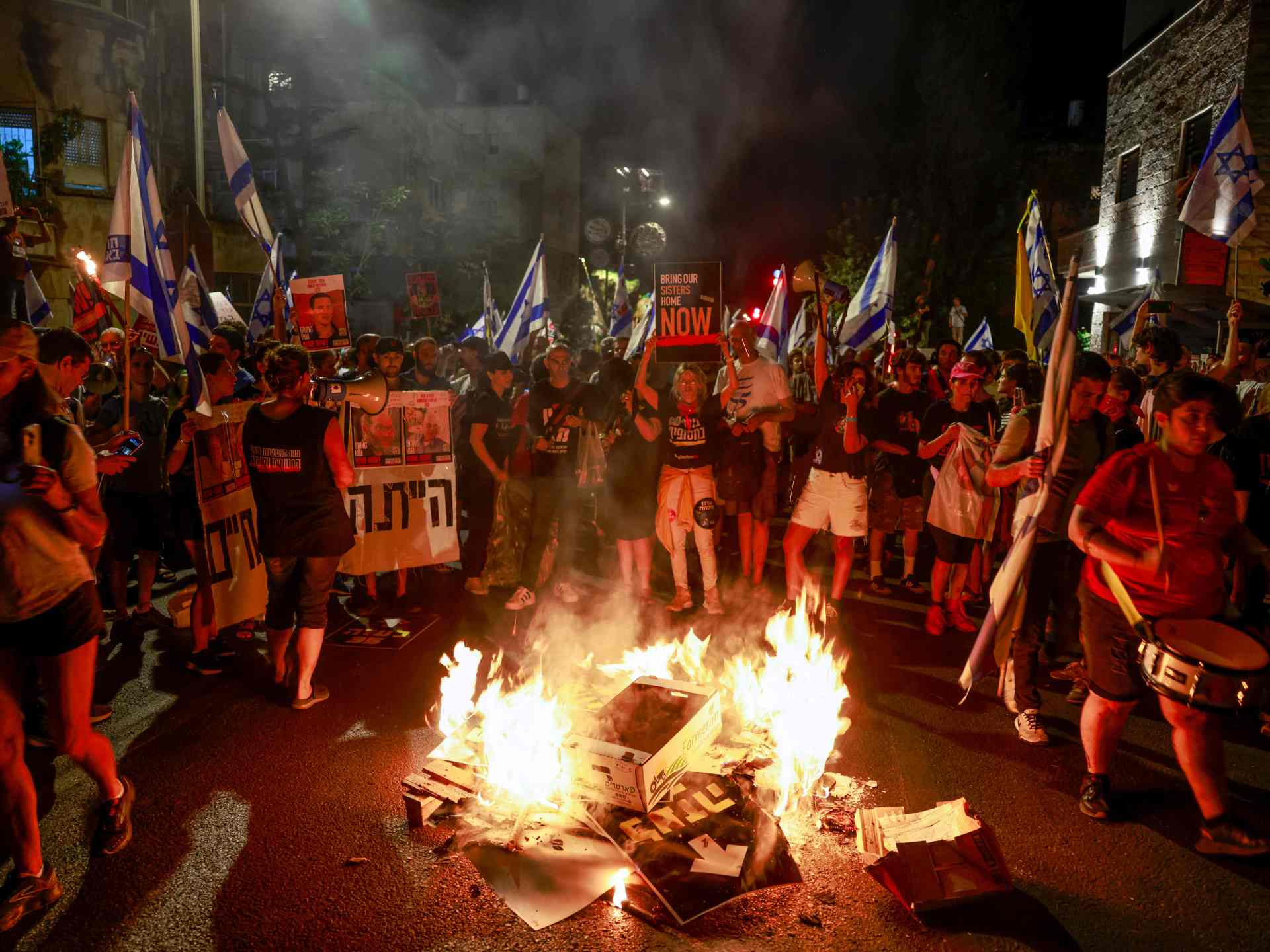 وقد تمكن بعض المتظاهرين من اختراق حاجز للشرطة وضع لمنعهم من الوصول لمقر نتنياهو، بينما أضرم البعض النار قرب المقر، وفقا للمراسل.