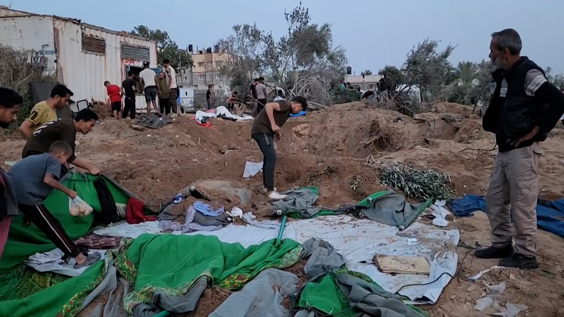 ومن جانبه، طالب الاتحاد الأوروبي بتحقيق مستقل بشأن المقابر الجماعية التي اكتُشفت في مجمع ناصر الطبي بخان يونس جنوبي قطاع غزة، ومستشفى الشفاء شمال القطاع، بعد انسحاب الجيش الإسرائيلي من المستشفيين.