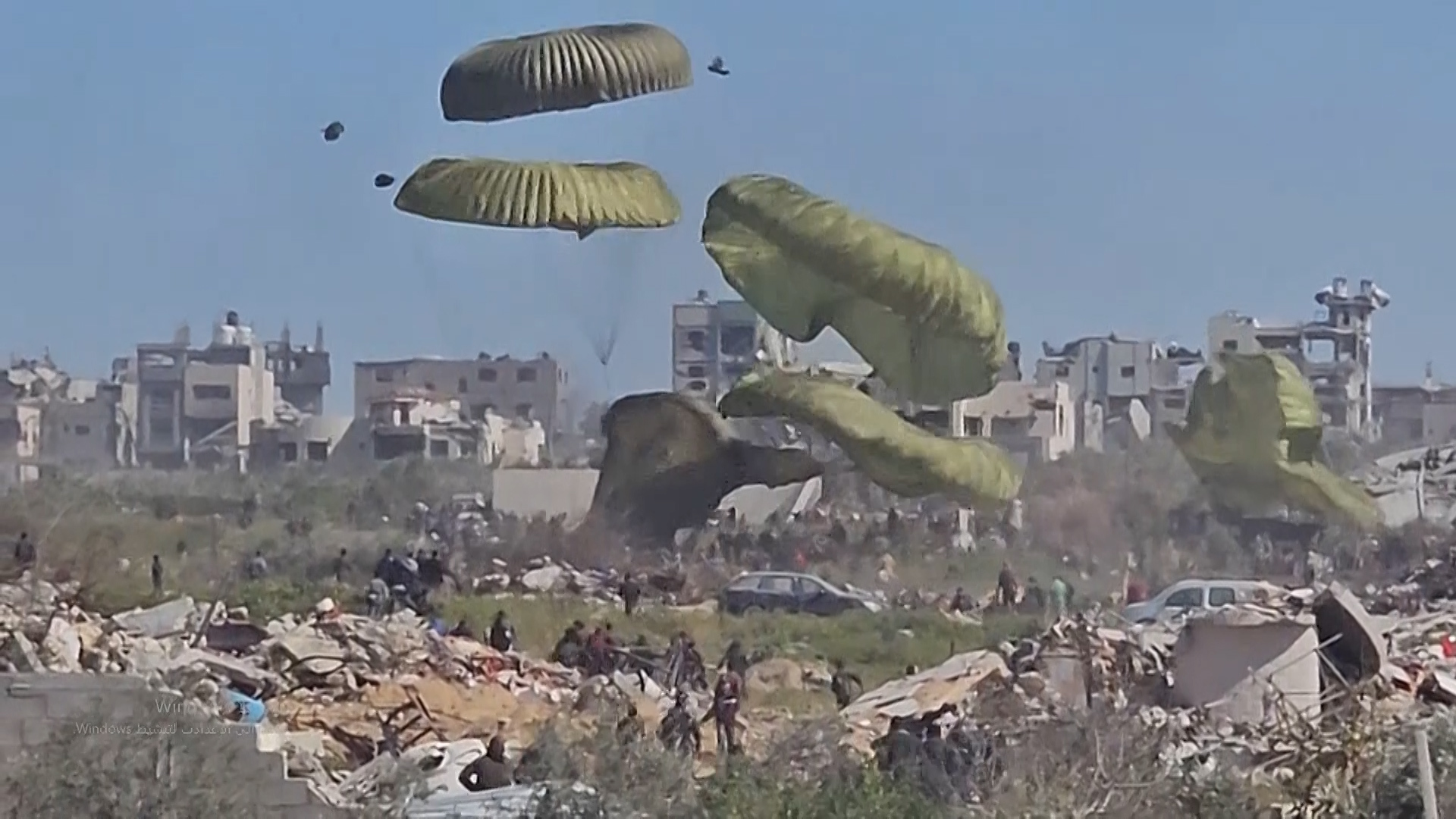 ويقول الصحفي فوزي بشرى في تقرير بثته الجزيرة إن قضية إغاثة القطاع من الجو أو إغاثة أهله رغم وجود معبر رفح تبدو مفارقة لافتة، حيث تتكدس آلاف الشاحنات التي ترفض إسرائيل دخولها إلى القطاع.