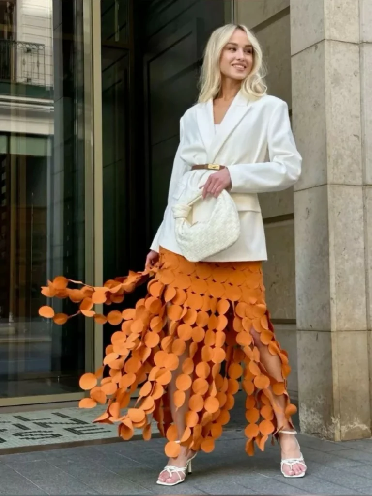 جاذبية التصميم: لماذا تكتسح التنورة بشرّاشيب هندسية عالم الموضة؟