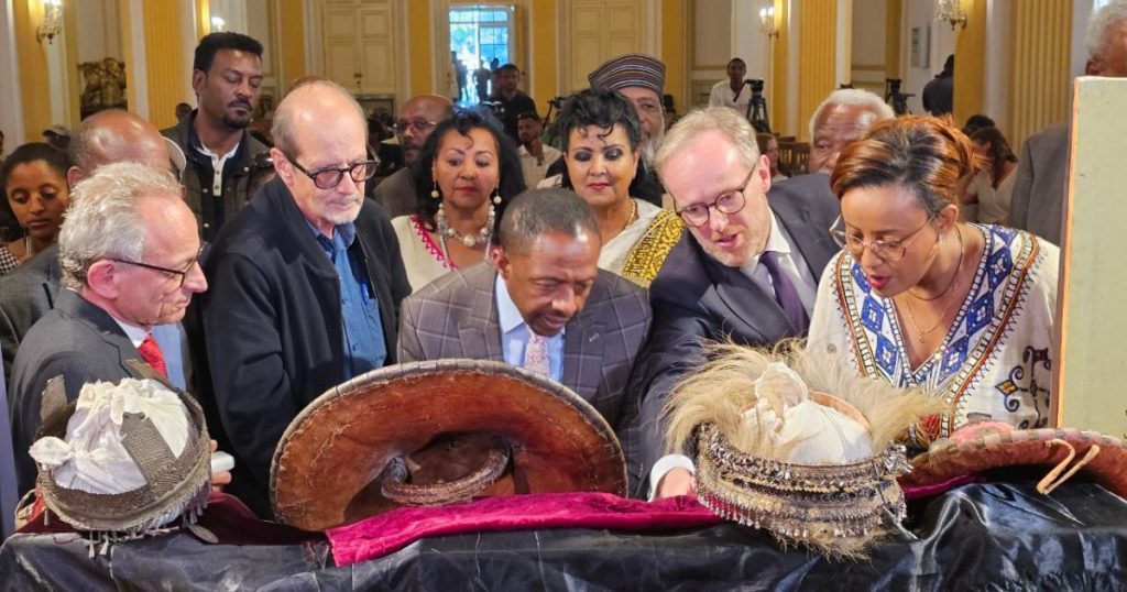 جرى تسليم القطع خلال احتفال أقيم في قاعة “راس مكونن” بالعاصمة الإثيوبية، حيث تم عرضها قبل التسليم للسماح للحضور بمعاينتها. وتضم المجموعة الأثرية مجموعة متنوعة من العناصر التي تعكس التاريخ الغني لإثيوبيا، بما في ذلك التيجان الملكية والدروع المزخرفة والأسلحة التقليدية والمخطوطات القديمة.
