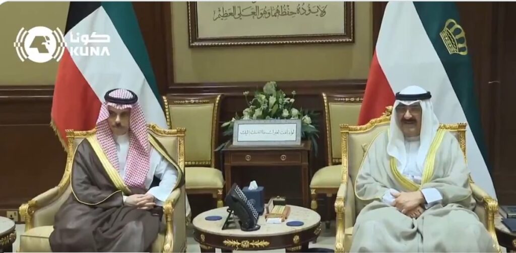 استقبل أمير الكويت الشيخ مشعل الأحمد، وزير الخارجية الأمير فيصل بن فرحان خلال زيارته الرسمية للبلاد.