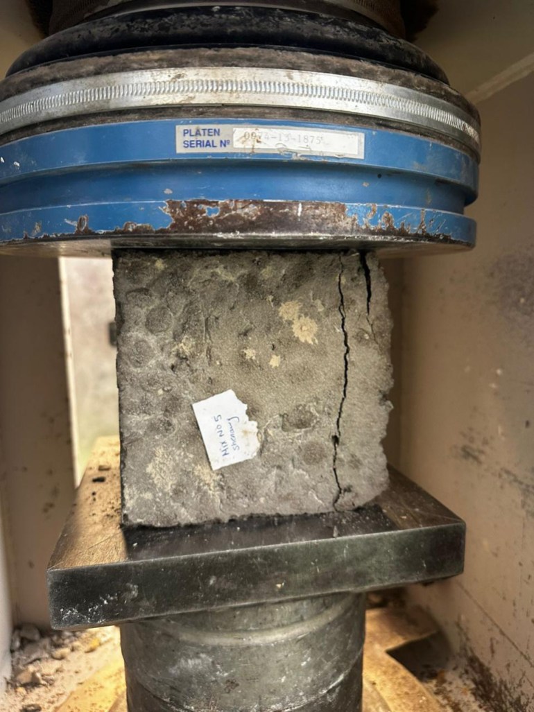 وكانت هذا التحديات التي أشار إليها عبد الباسط حاضرة في أذهان الطلاب ومشرفيهم، إذ تقول الكرماني: “الاختبارات المعملية شملت تعريض العينات لضغوط مشابهة لما تتعرض له المباني على مدى سنوات طويلة، وكان هناك اطمئنان على السلامة الهيكلية دفعتنا للخروج بتوصيات تتعلق باستخدام الركام مع مياه البحر، وأخرى باستخدام الركام مع المياه العذبة”.