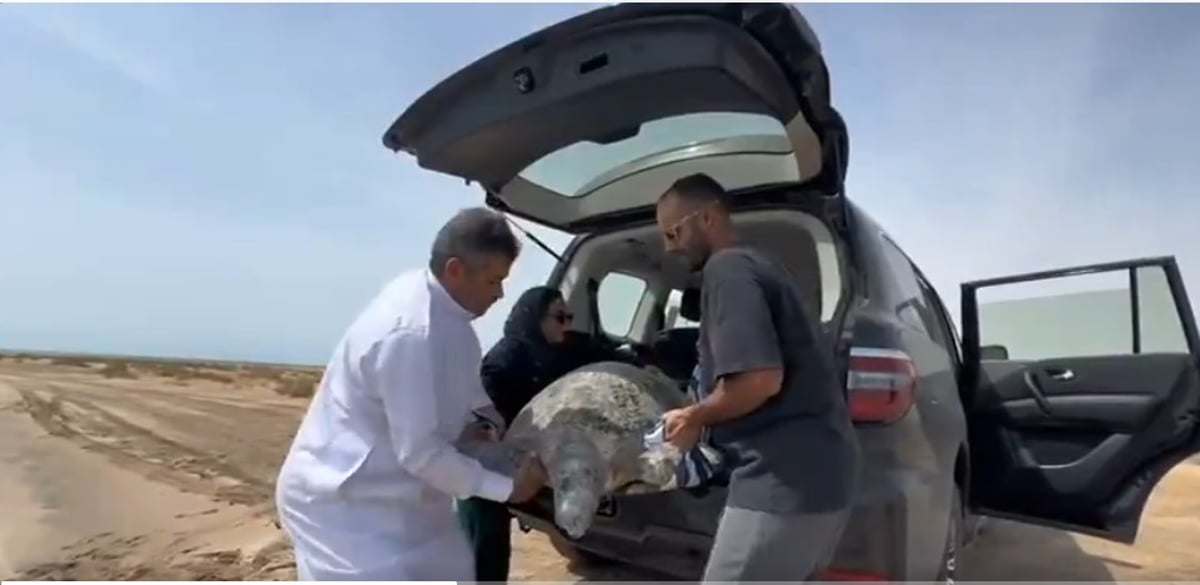 إنقاذ سلحفاة ابتعدت عن الشاطئ في أملج وتقديم الرعاية لها قبل إعادتها للبحر