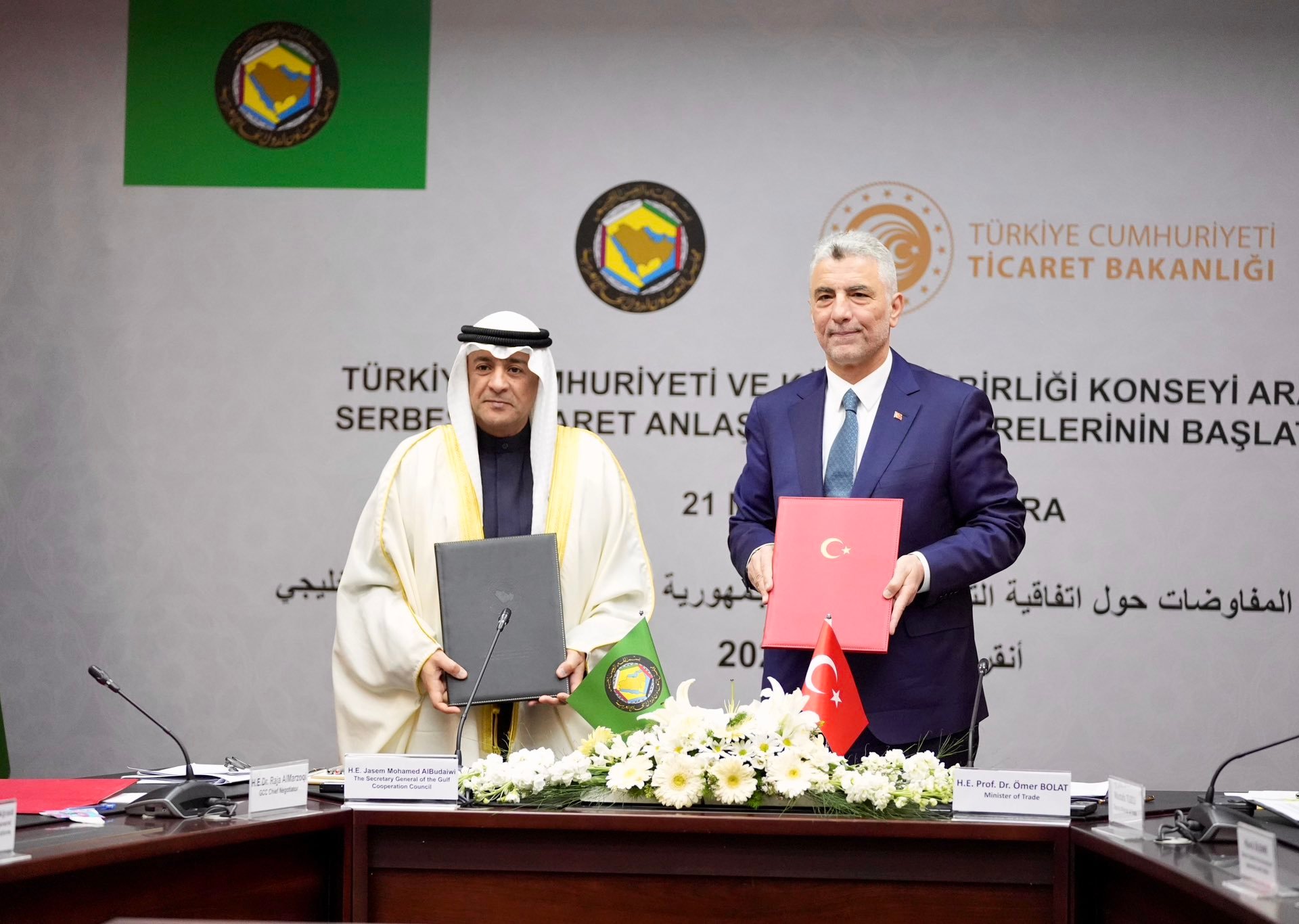 وأعلنت وزارة التجارة التركية توقيع وزير التجارة عمر بولات مذكرة مشتركة مع الأمين العام لمجلس التعاون الخليجي جاسم محمد البديوي لبدء المفاوضات بشأن اتفاقية التجارة الحرة بين الجانبين بقيمة 2.4 تريليون دولار.