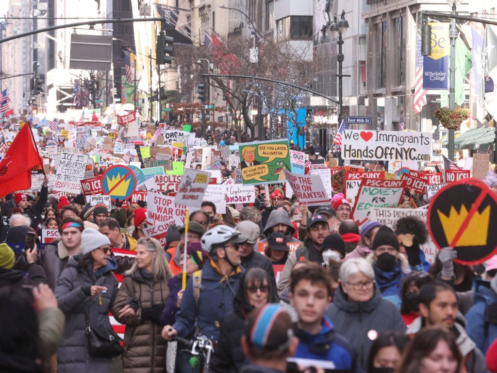 شهدت مدينة نيويورك مسيرة ضخمة يوم الأحد، حيث تجمع الآلاف بالقرب من برج ترامب للتعبير عن غضبهم وإدانتهم للحادث. ورفع المتظاهرون لافتات منددة بسياسات الرئيس السابق دونالد ترامب تجاه المهاجرين، بالإضافة إلى انتقادات للتدخل الأمريكي في الشؤون الخارجية، خاصةً في فنزويلا. وقد أبلغت الشرطة عن وقوع اشتباكات محدودة بين المتظاهرين ومجموعة صغيرة من مؤيدي ترامب، مما أدى إلى اعتقال شخص واحد.