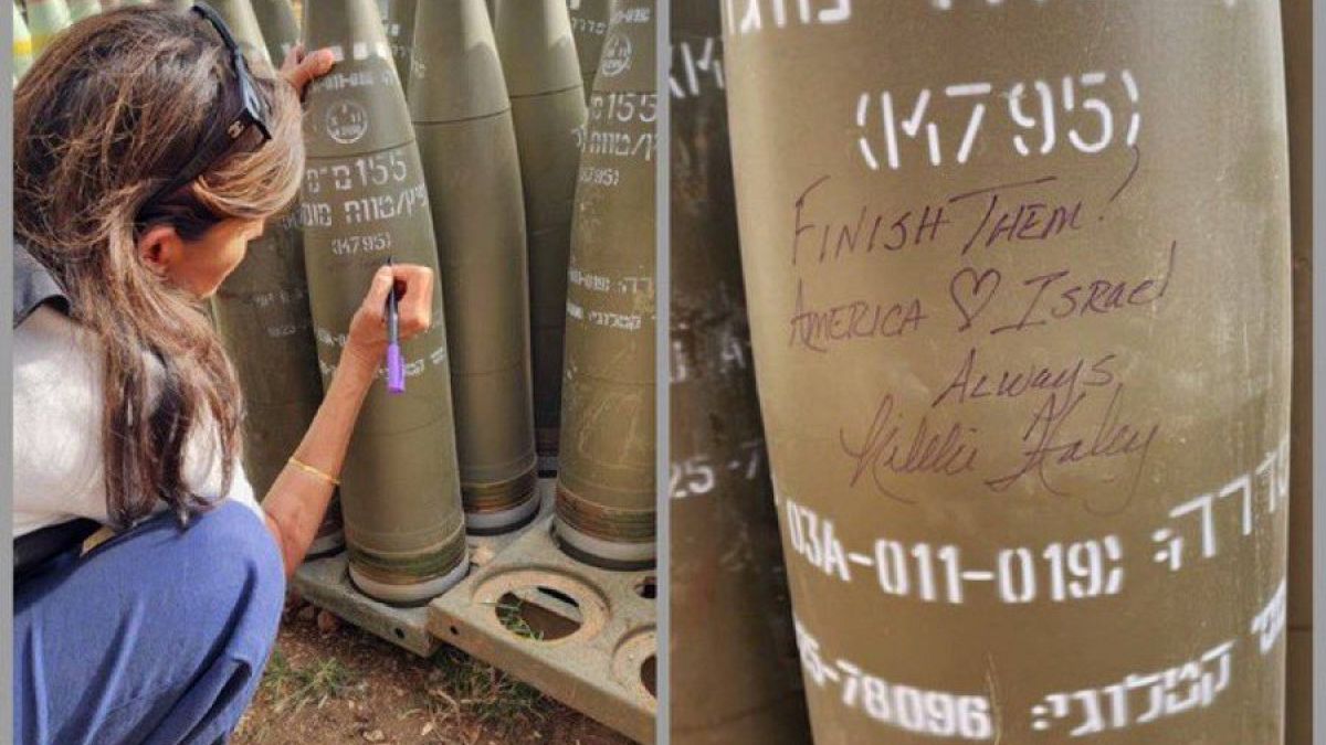زارت المرشحة الجمهورية السابقة للرئاسة الأمريكية نيكي هايلي يوم الثلاثاء، مواقع عسكرية في إسرائيل بالقرب من الحدود الشمالية مع لبنان، حيث وقعت باسمها على قذيفة مدفعية تحت رسالة كتبت عليها “اقضوا عليهم. أمريكا تحب إسرائيل دائماً” وأرفقتها بصورة قلب.