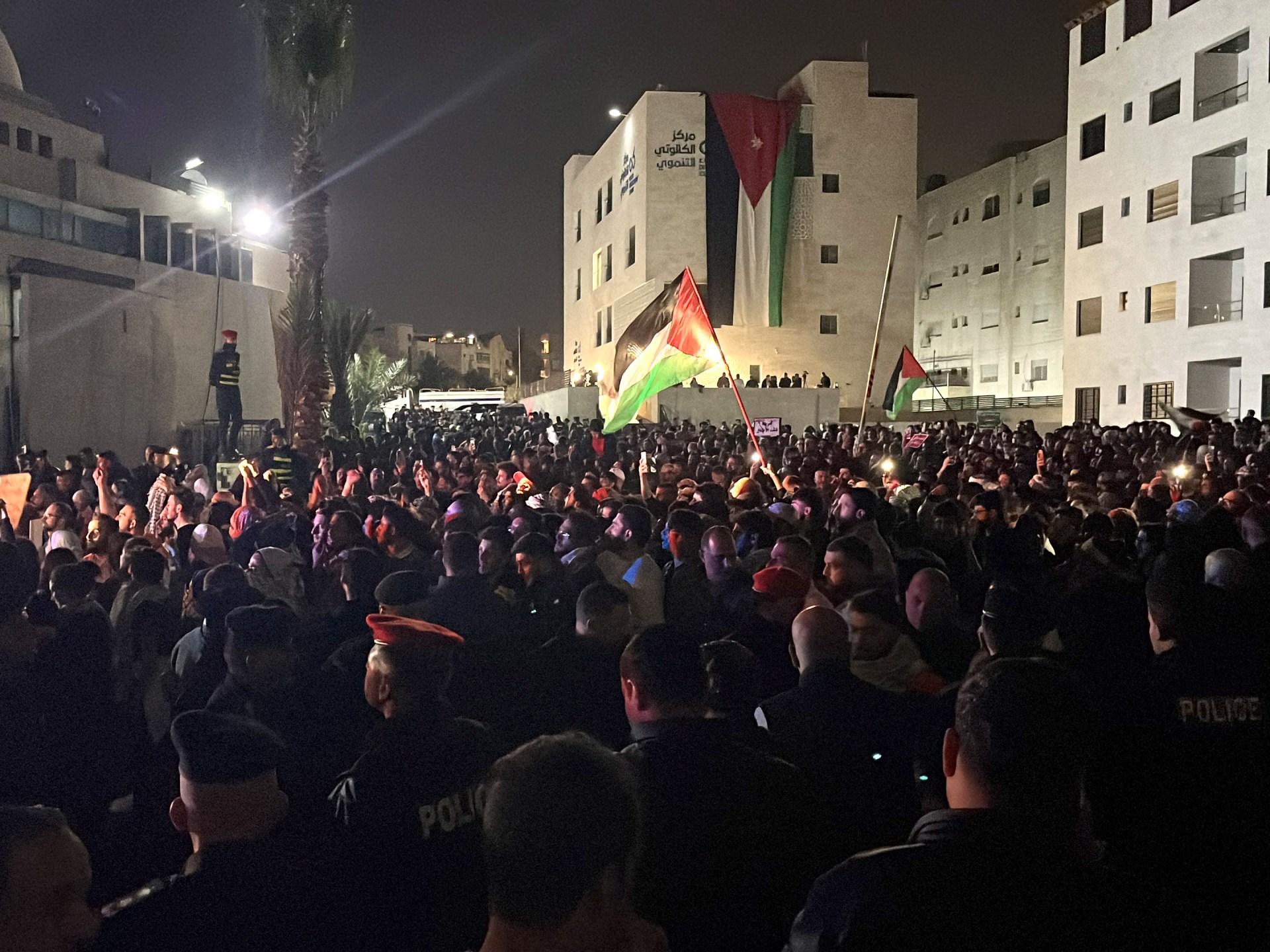وشهدت العاصمة الأردنية على مدار الأيام الماضية مظاهرات في محيط السفارة الإسرائيلية بعمّان احتجاجا على استمرار العدوان الإسرائيلي على غزة، ولمطالبة السلطات الأردنية بإغلاق سفارة الاحتلال، وإلغاء اتفاقية السلام مع إسرائيل.