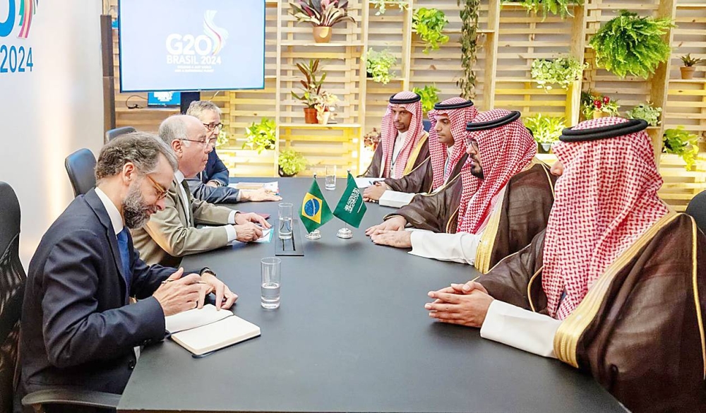 من جانب آخر، التقى وزير الاقتصاد والتخطيط، وزير خارجية البرازيل الاتحادية ماورو فييرا، وناقش الوزيران جدول أعمال الرئاسة البرازيلية لمجموعة العشرين، وتناولا العلاقات الثنائية وسبل تعزيز التعاون بين البلدين في مختلف القطاعات كالبنية التحتية، والأعمال التجارية الزراعية، وقطاعات الطاقة المتجددة.