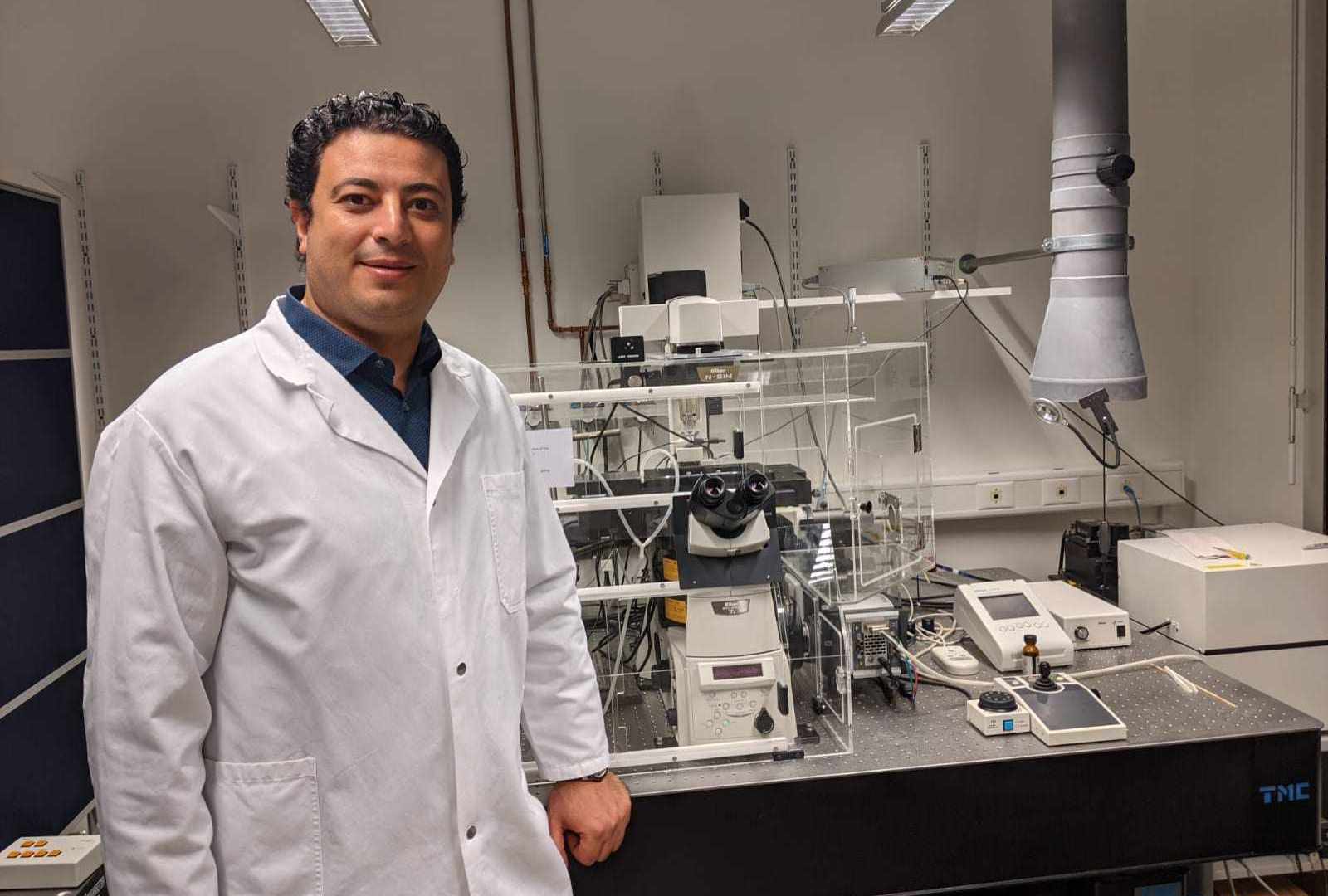 هيثم شعبان أجرى أبحاثا مع لوثار شرميله، الأستاذ بجامعة أكسفورد، في تصوير أجزاء من جينوم الخلايا الحية (هيثم شعبان)