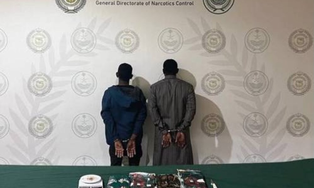 قبضت المديرية العامة لمكافحة المخدرات على مخالفين لنظام أمن الحدود من الجنسية الإثيوبية بمنطقة الرياض لترويجهما مادة الحشيش المخدر، وجرى إيقافهما واتخاذ الإجراءات النظامية بحقهما، وإحالتهما إلى النيابة العامة.