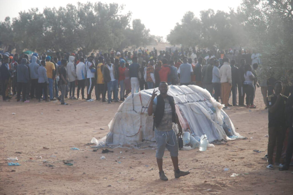 تونس- يعود مامادو (اسم مستعار) -وهو مهاجر من غينيا– إلى الخيمة المنصوبة وسط حقل زيتون في منطقة جبنيانة جنوب تونس وهو يحمل قارورة من الماء ظفر بها بعد جهد وعناء كبيرين، فالبحث عن الماء والطعام بات أبرز أشكال معاناة المهاجرين غير النظاميين في تونس.
