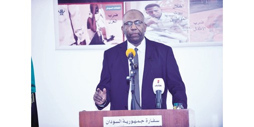 وقال في مؤتمر صحافي عقده في مقر السفارة تحت عنوان «انتهاكات الدعم السريع ضد المدنيين العزل»: أعرب عن بالغ تقدير وشكر حكومة بلاده لموقف الكويت الأخير في مجلس حقوق الإنسان مع السودان وتصويتها إلى جانبه، الأمر الذي يعكس رسوخ وعمق العلاقات الثنائية المتجذرة بين البلدين والشعبين الشقيقين».