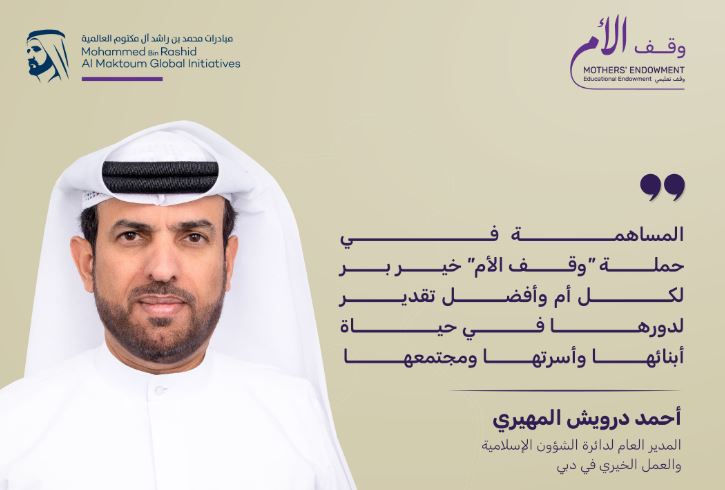 وقال سعادة أحمد درويش المهيري المدير العام لدائرة الشؤون الإسلامية والعمل الخيري في دبي: “حملة (وقف الأم) مبادرة كريمة جديدة من صاحب السمو الشيخ محمد بن راشد آل مكتوم، حيث عودنا سموه على إطلاق مبادرات خيرية وإنسانية ملهمة في شهر رمضان الفضيل، من أجل إغاثة ومساعدة المحتاجين في أي مكان من العالم، وتحسين حياة المجتمعات الأقل حظاً، والمساهمة في هذه الحملة المباركة التي تستهدف تعليم ملايين الأفراد وتمكينهم من أسباب العيش الكريم، خير بر لكل أم، وأفضل تقدير لدورها في حياة أبنائها وأسرتها ومجتمعها”.