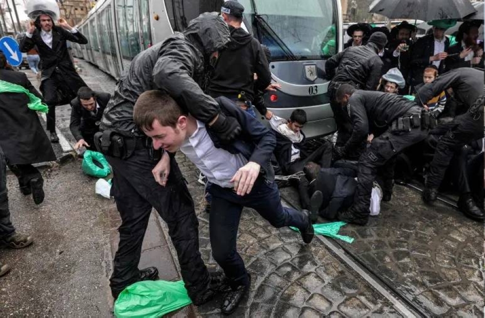 استخدمت الشرطة الإسرائيلية أمس (الإثنين) القوة ضد مظاهرات الحريديم المثيرة للشغب في القدس، وبحسب الشرطة فإن المتظاهرين اتهموا عناصرها بالنازية وطالبوهم بالذهاب للموت في غزة.
