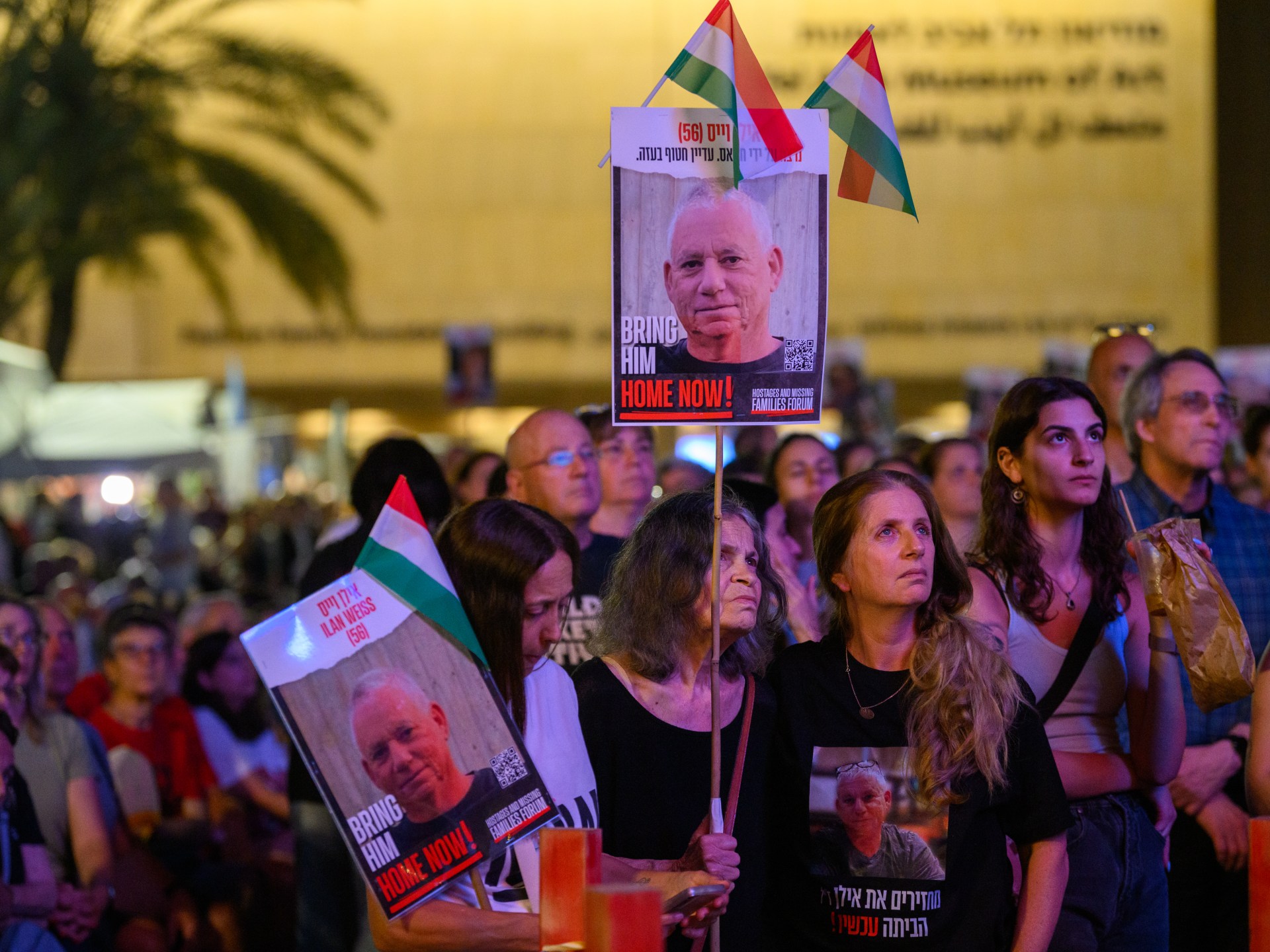 ودعت منظمة “إخوة السلاح” الإسرائيلية، إلى الاحتجاجات التي شهدت رفع المشاركين فيها صورا لأسرى إسرائيليين في قطاع غزة، وأعلام إسرائيلية.