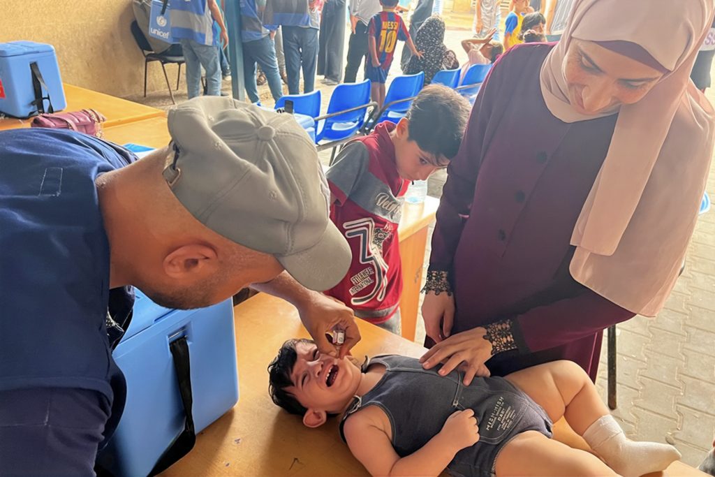 وأضاف -خلال الفقرة الإنسانية على شاشة الجزيرة- “حسب المعلومات الأخيرة، هناك أكثر من 86 ألف طفل تم تطعيمهم ضد شلل الأطفال منذ صباح أمس عندما بدأت هذه الجولة الأولى، وذلك بحسب العاملين في منظمة الأمم المتحدة للطفولة (يونيسيف) وهيئة الأمم المتحدة لإغاثة وتشغيل اللاجئين الفلسطينيين (أونروا)”.