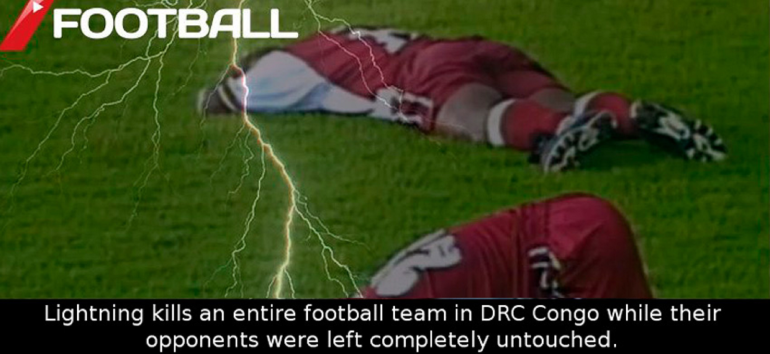 في حادثة مثيرة التقطتها عدسات التصوير في قلب القارة الأفريقية، حيث تقع جمهورية الكونغو الديمقراطية، جمعت مباراة كرة القدم بين فريقي “تشادي” و”باسنغا” في خريف عام 1998 في مقاطعة كاساي. وبينما كانت المباراة تسير برتمها الطبيعي والفريقان يحكمهما التعادل، لمع وميض لامع شوّش الرؤية برهةً خاطفة، ثمّ عادت عدسة الكاميرا تنقل صورة اللاعبين وهم يتساقطون تباعا على الأرض.