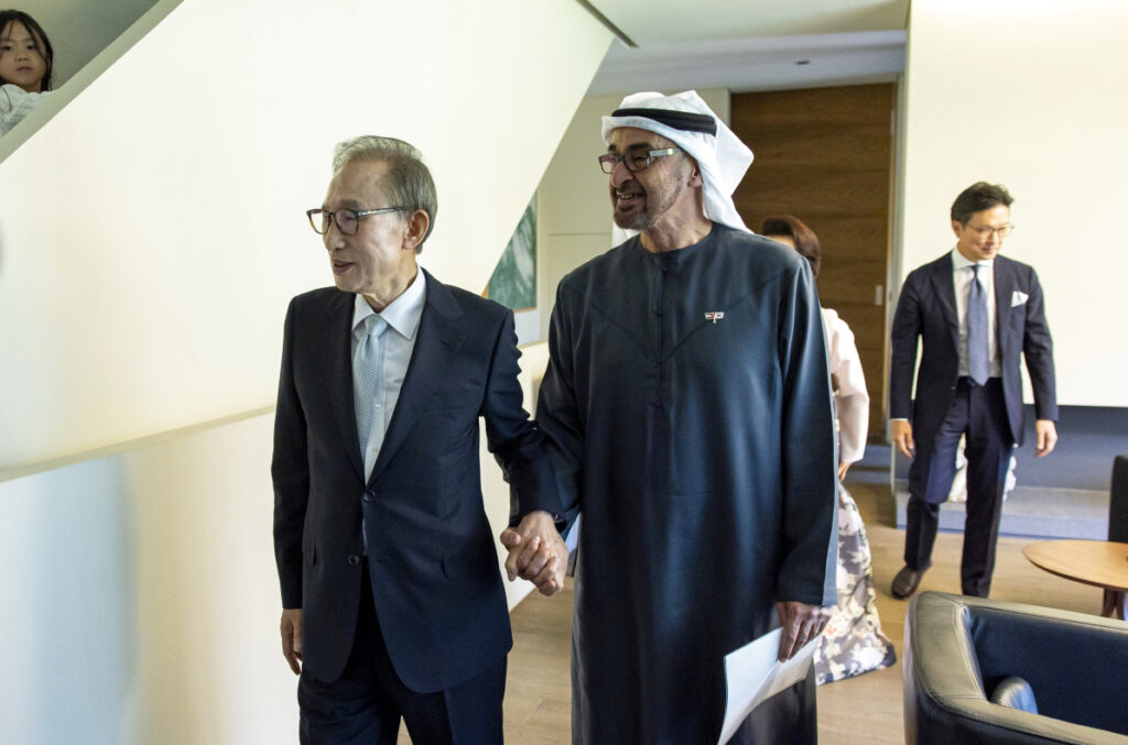 واستذكر الجانبان زياراتهما السابقة على مدى سنوات سواء إلى جمهورية كوريا أم إلى دولة الإمارات والعمل معاً على بناء جسور قوية للتعاون بين البلدين، مشيرين إلى ما أثمر عنه هذا التعاون من تطور نوعي كبير في العلاقات الثنائية بين دولة الإمارات وكوريا والتي ارتقت إلى مستوى «الشراكة الاستراتيجية» وتجسدت في أحد أهم مشاريع التعاون بين البلدين وهو «المشروع النووي السلمي» الذي بدأ خلال رئاسة لي ميونغ باك.