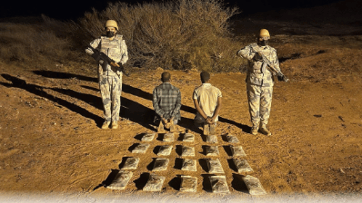 أعلنت الدوريات البرية لحرس الحدود في قطاع ظهران الجنوب بمنطقة عسير، القبض على مخالفين لنظام أمن الحدود من الجنسية الإثيوبية، لتهريبهما (22) كيلوجرامًا من مادة الحشيش المخدر.
