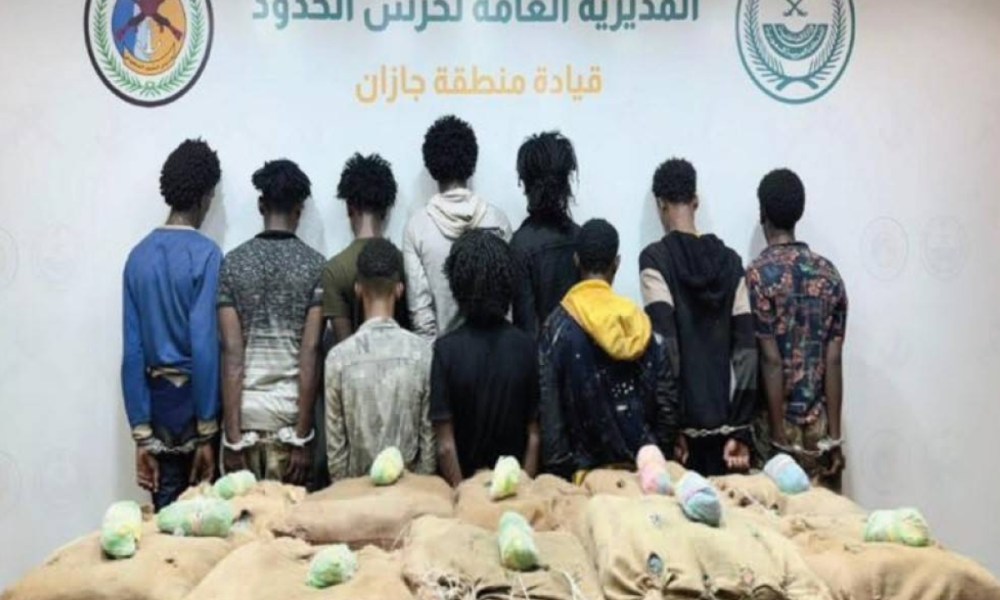 تمكنت الدوريات البرية لحرس الحدود في قطاع الدائر بمنطقة جازان من القبض على 10 مخالفين لنظام أمن الحدود، جميعهم من الجنسية الإثيوبية. وقد تم ضبطهم أثناء محاولتهم تهريب 200 كيلوغرام من نبات القات المخدر.