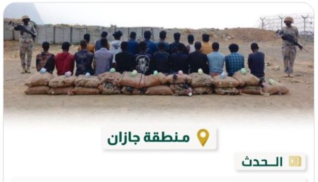 ألقت الدوريات البرية لحرس الحدود في قطاع الدائر، بمنطقة جازان، القبض على 21 مخالفاً لنظام أمن الحدود من الجنسية الإثيوبية لتهريبهم 320 كيلوجرامًا من نبات القات المخدر.