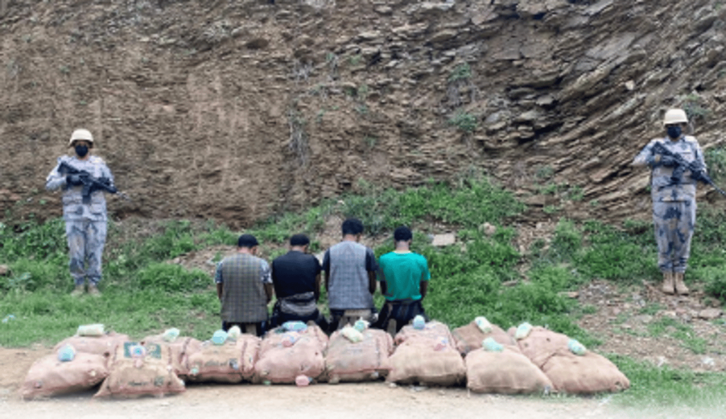 أعلنت الدوريات البرية لحرس الحدود في قطاع الدائر بمنطقة جازان، القبض على (4) مخالفين لنظام أمن الحدود من الجنسية الإثيوبية، لتهريبهم (250) كيلوجرامًا من نبات القات المخدر.