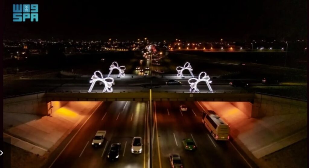 وقامت الأمانة بتركيب أكثر من 700 من المجسمات الجمالية، إضافة إلى آلاف الأعلام، في عدد من المواقع، والشوارع الرئيسية، فيما زينت منشآتها البلدية بالإنارة الجمالية والأضواء لتهنئة المواطنين والزوار بقدوم عيد الأضحى المبارك، والكلمات الترحيبية بشعار العيد والتهنئة والتبريكات.