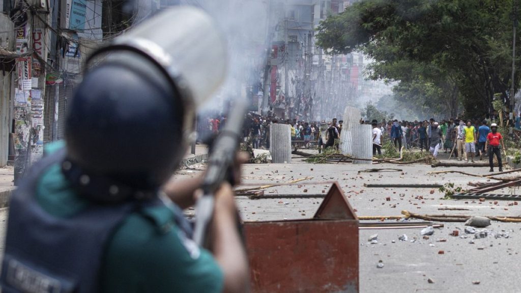 وملأ المتظاهرون الشوارع والحرم الجامعي وألقوا الحجارة. وأُبلغ عن وقوع اشتباكات متفرقة في بعض أجزاء العاصمة دكا يوم السبت، لكن لم يتضح على الفور ما إذا كان هناك أي قتلى.