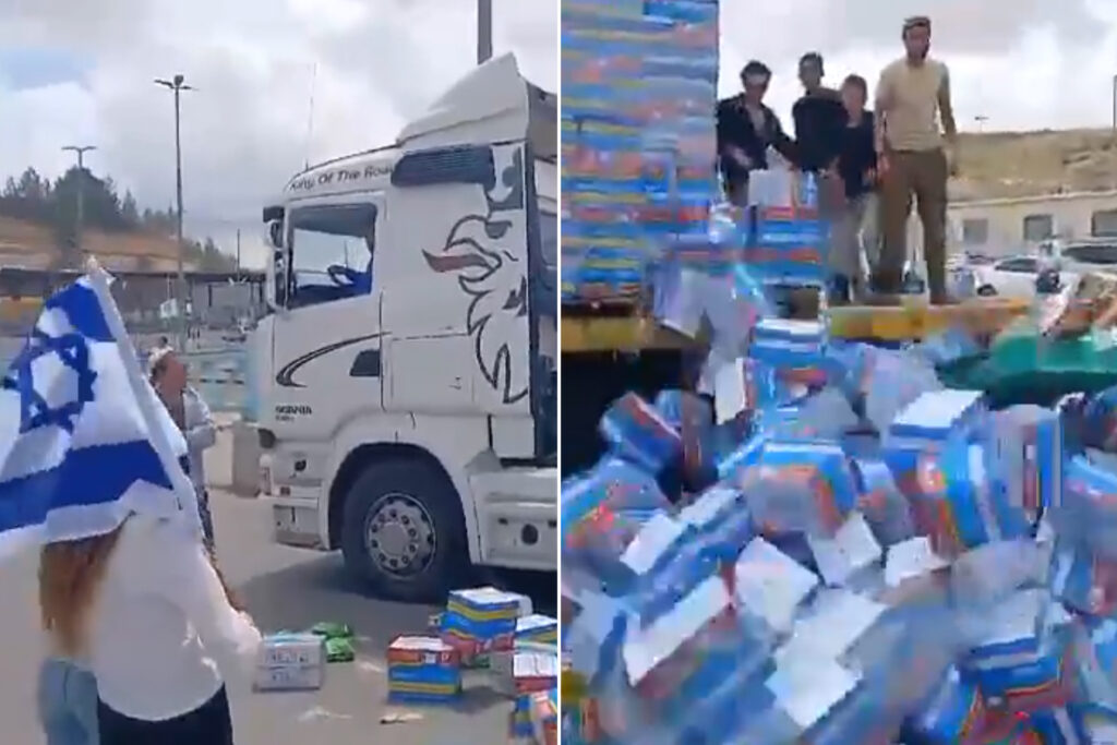 ووثقت المقاطع عملية سرقة شاحنات المساعدات الإنسانية وتوقيفها من طرف المستوطنين، خاصة شاحنات المساعدات القادمة من الأردن عبر معبر “إيريز”، وقيامهم بسرقتها وإتلافها.