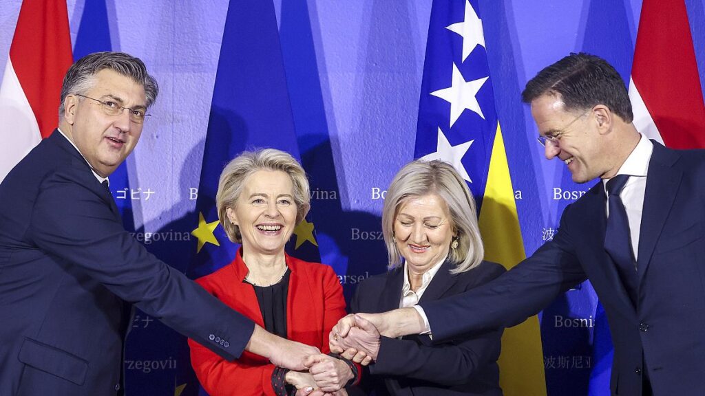 وقالت فون دير لاين: “منذ منحناها صفة المرشح، خطت البوسنة والهرسك خطوات إلى الأمام مثيرة للإعجاب. لقد تم تحقيق المزيد من التقدم فيما يزيد قليلاً عن عام مقارنة بما تم تحقيقه خلال عقد من الزمن”.