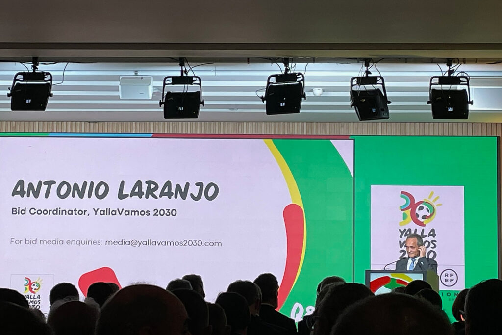كشف منسق ملف الترشيح المشترك لإسبانيا والبرتغال والمغرب لكأس العالم 2030 أنطونيو لارانغو -أمس الثلاثاء- أن لشبونة لن تستضيف المباراة النهائية للبطولة العالمية، مما يعني أن المنافسة ستنحصر بين الرباط ومدريد.