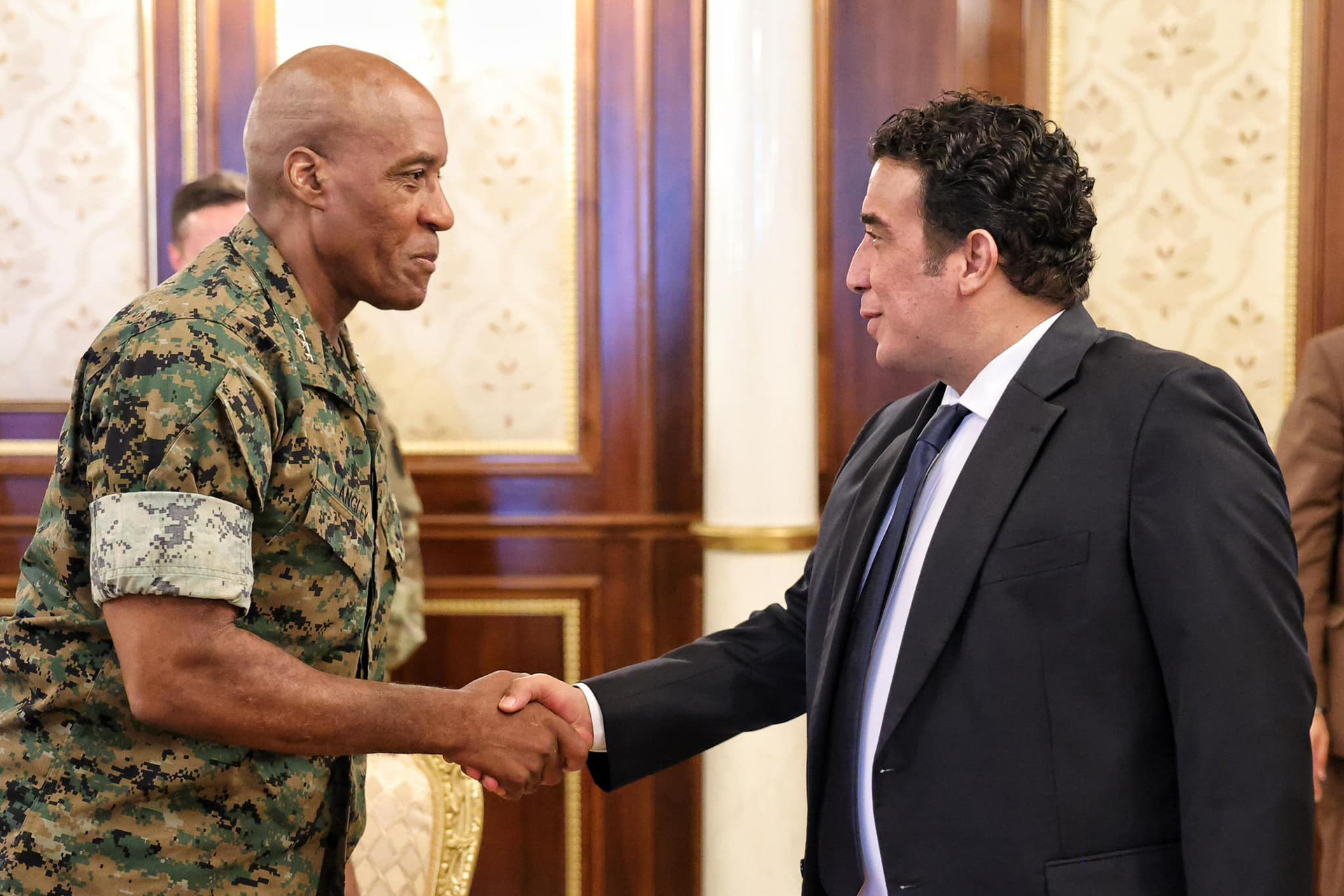 التقى رئيس المجلس الرئاسي الليبي محمد المنفي اليوم الخميس قائدَ القيادة العسكرية الأميركية في أفريقيا (أفريكوم) مايكل لانغلي في طرابلس لبحث الشراكة بين البلدين وسبل تطوير التعاون الأمني والعسكري.