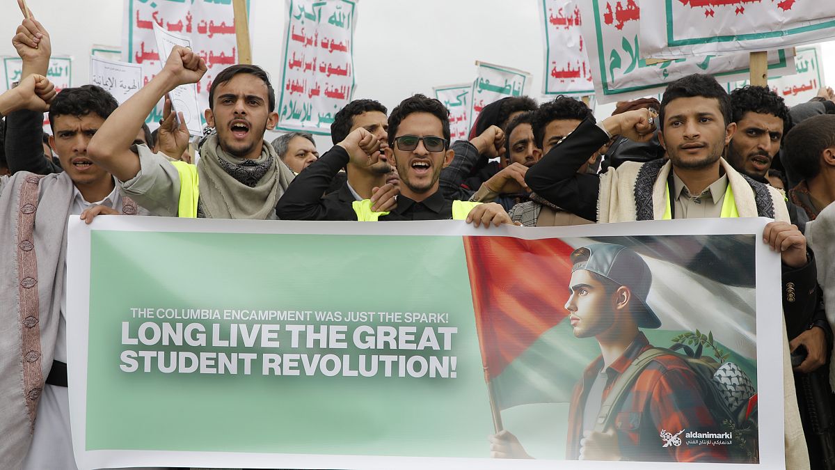ينظم الحوثيون احتجاجات كل يوم جمعة تقريبًا، نصرة للفلسطينيين منذ شن إسرائيل حربها على قطاع غزة في 7 أكتوبر.