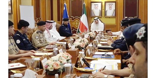 استمرارا للاجتماعات الدورية مع قيادات وزارة الداخلية للاطلاع على آخر المستجدات الأمنية في البلاد، ترأس النائب الأول لرئيس مجلس الوزراء ووزير الدفاع ووزير الداخلية الشيخ فهد اليوسف أمس الأربعاء اجتماعا أمنيا مع عدد من القيادات الأمنية وبحضور وكيل وزارة الداخلية الفريق الشيخ سالم النواف. ورحب الشيخ فهد اليوسف بالقيادات الأمنية ونقل لهم تحيات وتقدير القيادة السياسية العليا بالبلاد، وشكرهم على ما يبذلونه من جهود في حفظ الأمن في البلاد، مؤكدا أن جهودهم مقدرة من القيادة السياسية. واستمع وزير الداخلية من القيادات الأمنية إلى الخطط الأمنية التي يتم تطبيقها ميدانيا، كما اطلع على نتائج الحملات المكثفة التي تقوم بها قطاعات وزارة الداخلية على مخالفي قانون الإقامة والخارجين عن القانون.