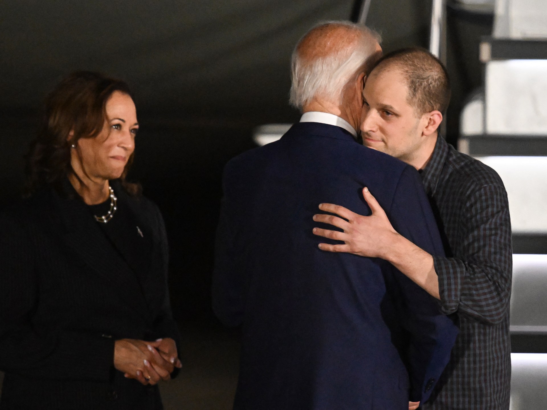 رحب الرئيس الأميركي جو بايدن ونائبته كامالا هاريس مساء أمس الخميس بمجموعة من السجناء الذين أفرجت عنهم روسيا ضمن صفقة تبادل مع الغرب وصفت بالتاريخية، شملت الصحفي إيفان غيرشكوفيتش وعناصر من مشاة البحرية الأميركية، في قاعدة أندروز الجوية قرب واشنطن.