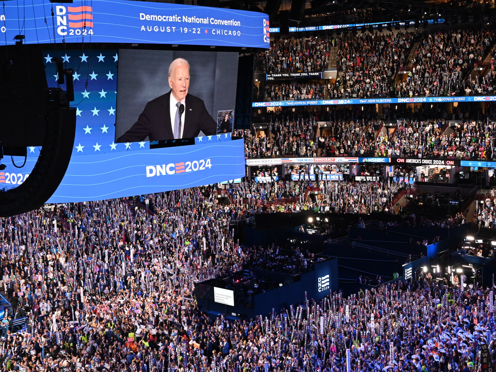 وحظي الرئيس بايدن بتصفيق حار لدى وصوله قاعة المؤتمر لإلقاء خطاب يسلّم فيه الشعلة لنائبته كامالا هاريس التي سيرشّحها الحزب رسميا لخلافته في منافسة الجمهوري دونالد ترامب برئاسيات نوفمبر/تشرين الثاني المقبل.