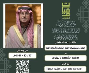 الوجية الاجتماعي بالهفوف الحاج سلمان الحمضة ابوابراهيم في ذمة الله تعالى