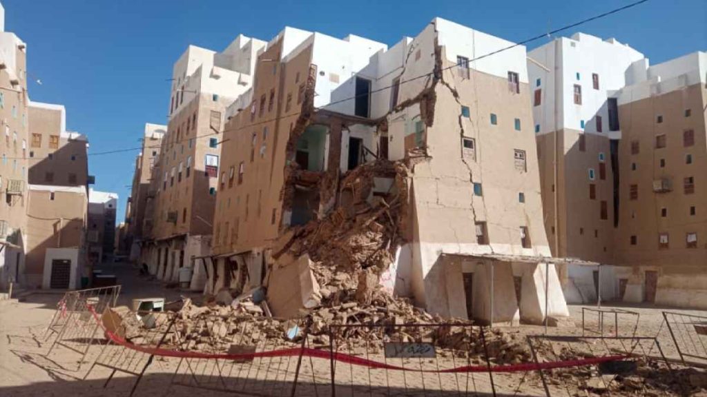 حضرموت – قبل ساعات من البدء في إزالة منزل قديم، انهار جزء من مبنى تاريخي مكون من ثلاثة طوابق في مدينة شبام القديمة بمحافظة حضرموت شرقي اليمن. هذا الحادث يسلط الضوء على التحديات المتزايدة التي تواجه الحفاظ على هذا المعلم الأثري الهام، المسجل على قائمة التراث العالمي لليونسكو منذ عام 1982، وعلى ضرورة تدخل عاجل لإنقاذ مدينة شبام من الانهيار.