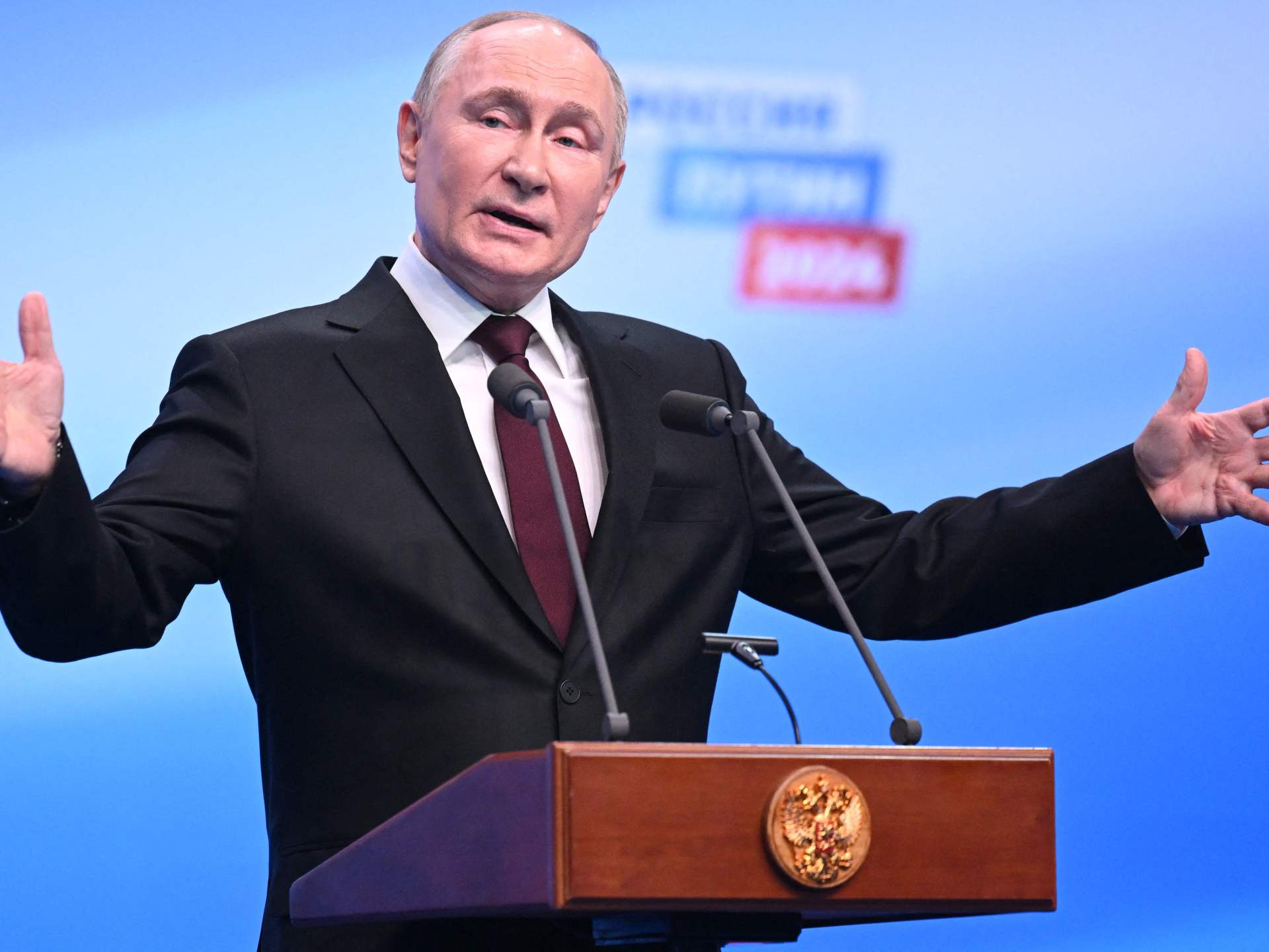 واعتبر بوتين أن فوزه في الانتخابات الرئاسية يظهر “ثقة” الروس في قيادته. وقال في خطاب بمقر حملته الانتخابية في موسكو “أمامنا العديد من المهام المحددة والمهمة التي يتعين علينا إنجازها.