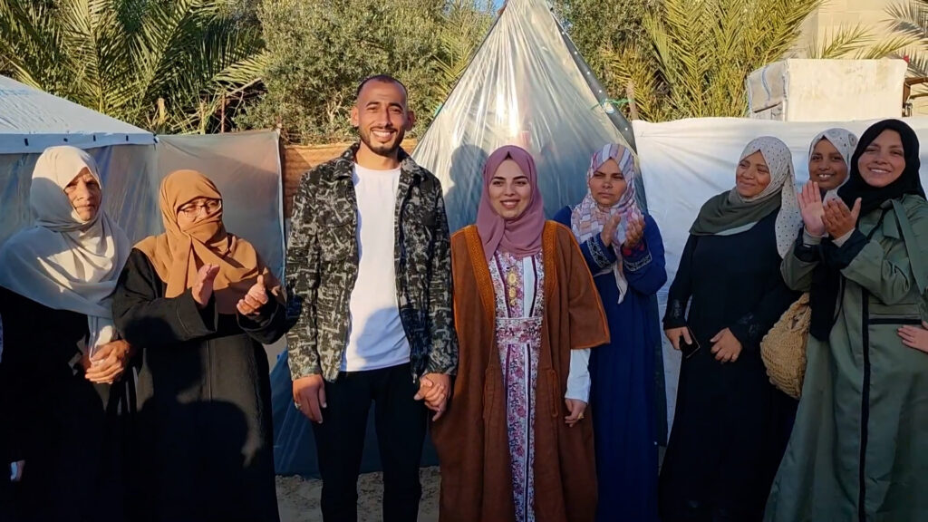 في ظل استمرار الحرب الإسرائيلية، أقام الشاب الفلسطيني عبد اللطيف أبو طعيمة (27 عاما) حفل زفاف بسيط ومتواضع في مخيم للنزوح بمحافظة رفح جنوب قطاع غزة.