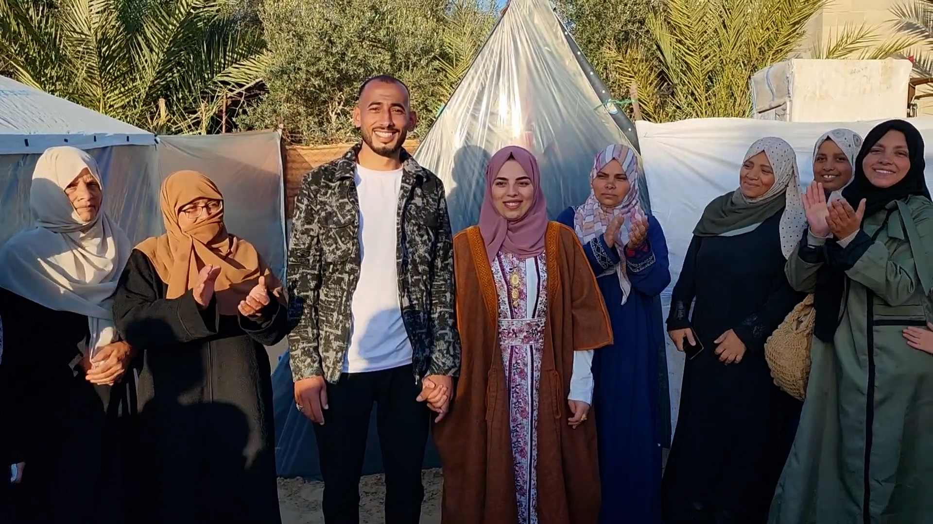 وأصر أبو طعيمة على إقامة حفل زفافه على عروسه وعد أبو جامع، داخل خيمة صغيرة بحضور عائلتيهما، رغم أشهر من الحرب الإسرائيلية على القطاع المحاصر.