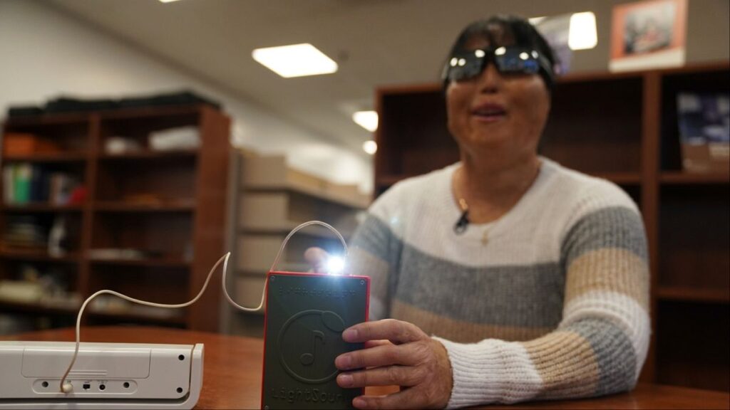 من جهتها أوضحت مديرة التوعية إيرين فراغولا، أنّ مكتبة بيركنز المرتبطة بمدرسة بيركنز للمكفوفين في ووترتاون في ولاية ماساتشوستس، تفكر في بث النغمات المتغيرة لجهاز “لايت ساوند” عبر تطبيق “زووم”، لكي يتمكن الأعضاء من الاستماع إليها عبر الإنترنت وعبر الهاتف.