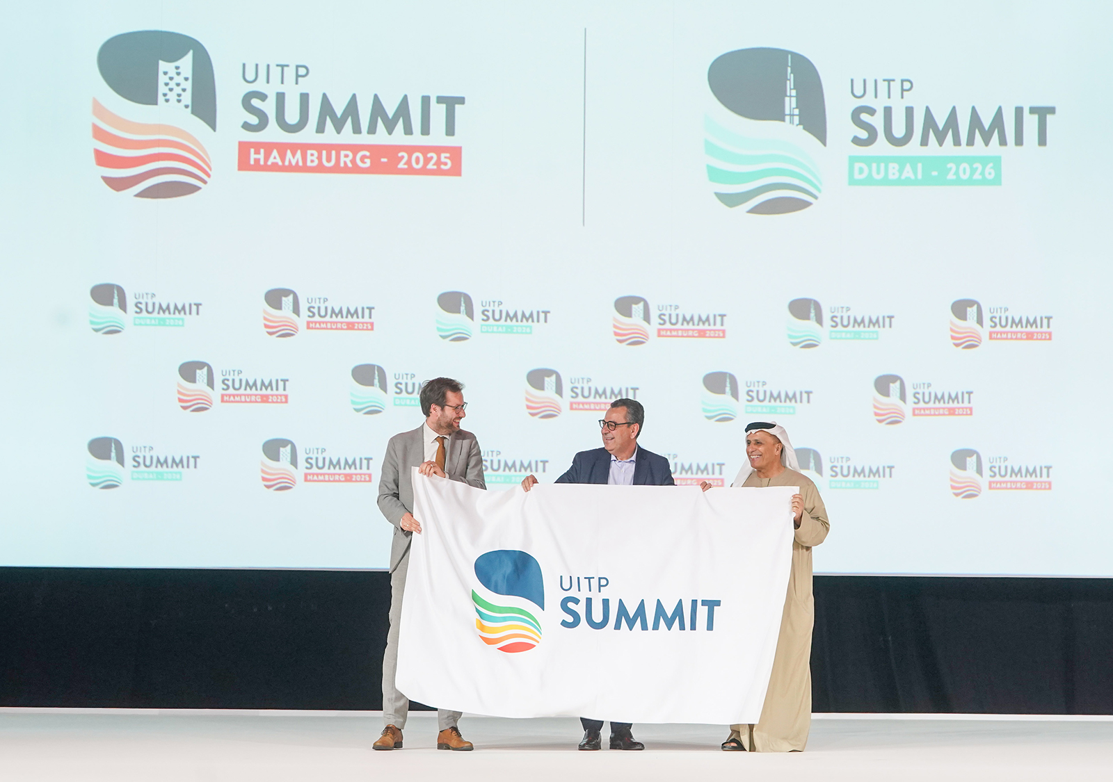 وتسلم معالي مطر الطاير المدير العام ورئيس مجلس المديرين في هيئة الطرق والمواصلات، ومعالي الدكتور أنجيس تجاركس، وزير المواصلات والتنقل الانتقالي في مدينة هامبورج الألمانية، من سعادة محمد المزغني الأمين العام للاتحاد العالمي للمواصلات العامة، علم استضافة قمتي الاتحاد العالمي للمواصلات العامة 2025 في هامبورج و2026 في دبي.