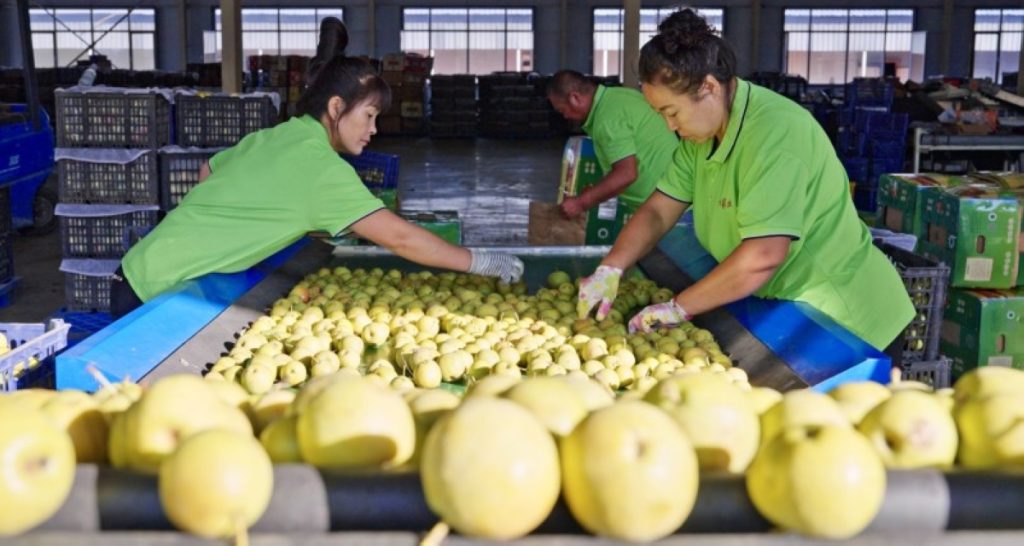 أظهر تقرير حديث، دخول العديد من شركات معالجة الفواكه إلى الاستثمار في الكمثرى، بهدف تصنيع عدد من المنتجات الجانبية من الكمثرى، كصناعة المعجون، بهدف تحقيق أعلى أرباح ممكنة من المحصول. وتظهر الصورة عاملتان خلال ترتيب المحصول. (إيكونومي دايلي الصينية).