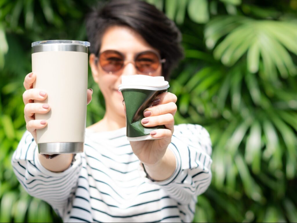 - استخدام الأكواب الزجاجية لا الورقية: في حال رغبت في تناول كوب من القهوة وأنت في طريقك إلى العمل، من الأفضل أن يكون معك كوبك القابل لإعادة الاستخدام، لأن الأكواب الورقية التي يمكن التخلص منها مغطاة بطبقة من البلاستيك، ولا تمكن إعادة استخدامها.