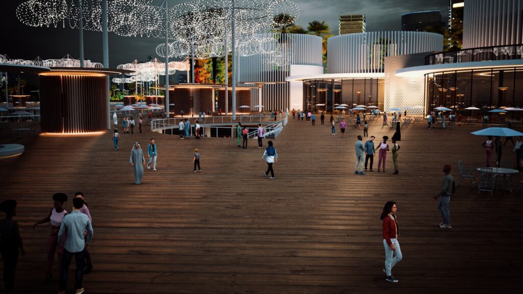 وكذلك، ستوفر أكثر من 1,400 موقف للسيارات والحافلات تضم مواقف مخصصة لشحن السيارات الصديقة للبيئة، إضافةً إلى توفير محطات لمياه الشرب وشبكاتٍ للري، وتصريف مياه الصرف الصحي بطول يزيد عن 5 كيلومتراً، وكذلك أنظمة أوتوماتيكية حديثة للري بهدف زيادة المسطحات الخضراء.
