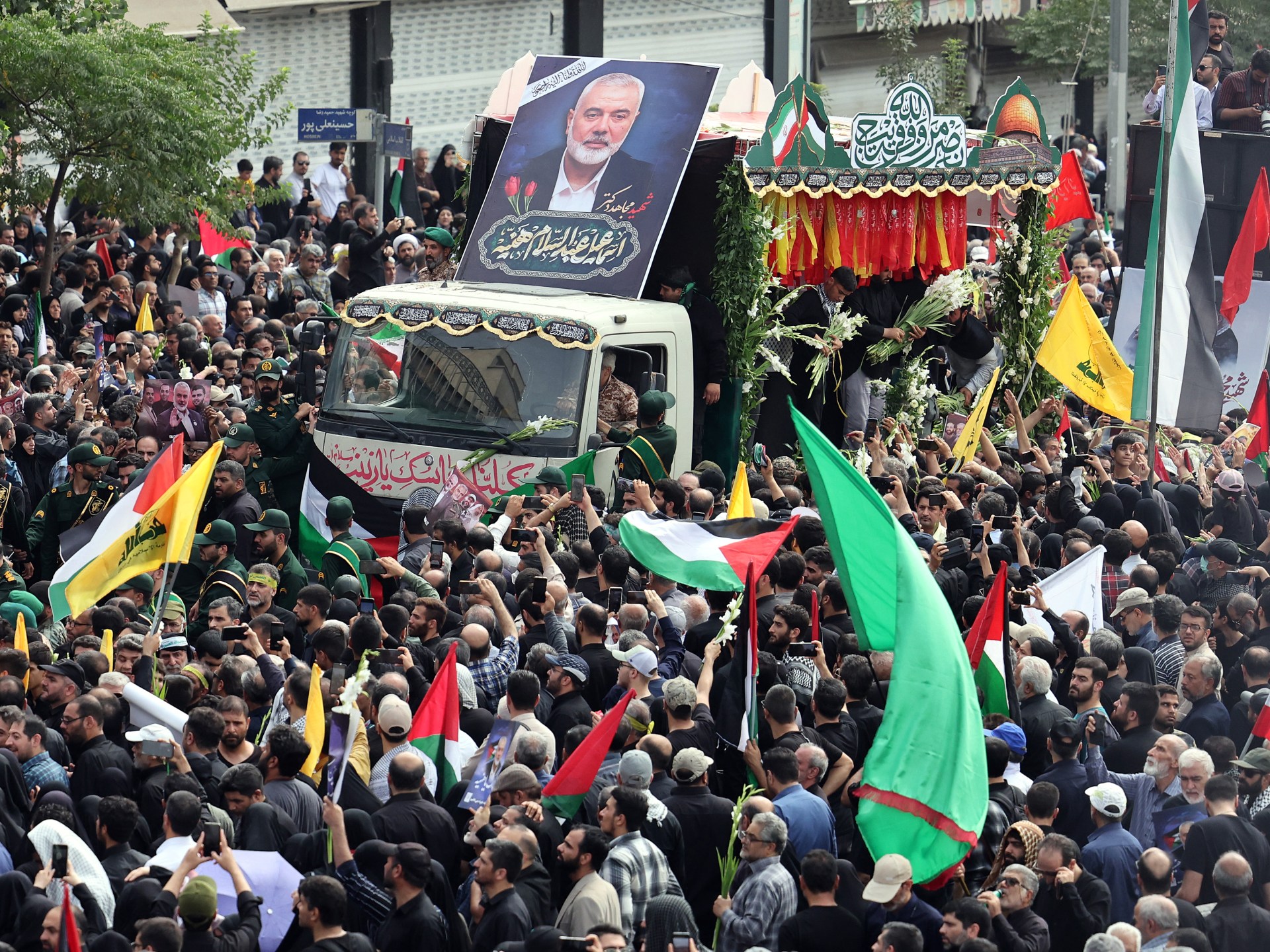 وشهدت طهران اليوم الخميس مراسم تشييع رسمية وشعبية لهنية، قبل نقل جثمانه إلى الدوحة لإقامة صلاة الجنازة ودفنه فيها غدا الجمعة.