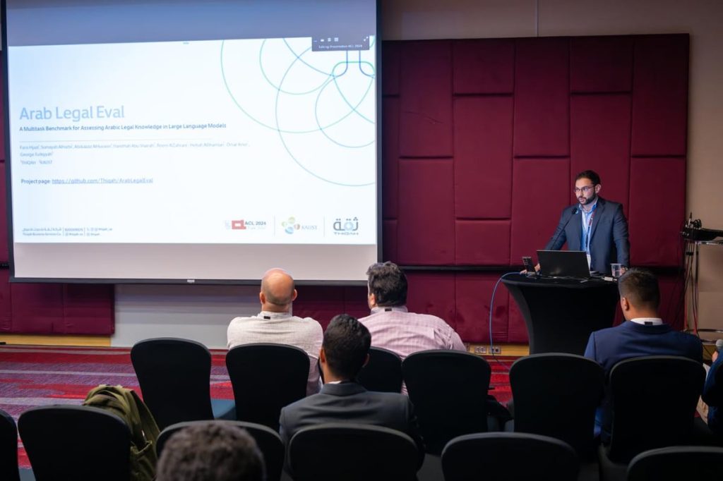 شاركت شركة “ثقة”، في مؤتمر معالجة اللغة الطبيعية باللغة العربية ArabicNLP 2024، والذي تستضيفه العاصمة التايلاندية بانكوك، حيث استعرضت ورقة بحثية قامت بها بالتعاون مع جامعة الملك عبدالله للعلوم والتقنية “كاوست”، واستهدفت تطوير معايير جديدة لتقييم قدرات النماذج اللغوية في فهم وفصل التعقيدات القانونية.